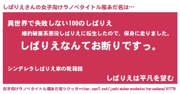 | 意味不明あだ名 | 『自称しばりえ』『永久保存しばりえ』 |