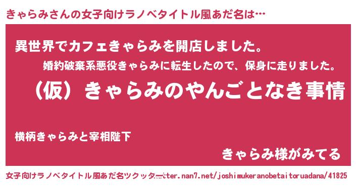 | 胡散臭い通販商品みたいなあだ名 | 『必ず成功する霊験あらたかなお札…その名も「きゃらみ」』 |
