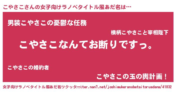 | 男性向けラノベタイトル風あだ名 | 『魔法科高校のこやさこ』 |
