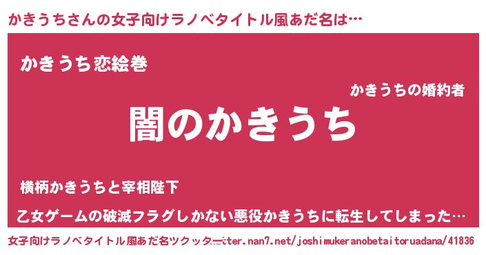 | 男性向けラノベタイトル風あだ名 | 『Re:かきうちから始める異世界生活』 |