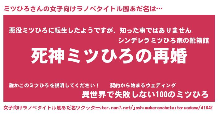 | 男性向けラノベタイトル風あだ名 | 『ノーゲーム・ノーミツヒロ』 |