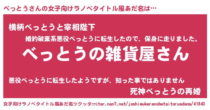 | 男性向けラノベタイトル風あだ名 | 『やはりべっとうの青春ラブコメはまちがっている 』 |