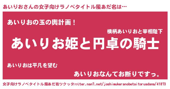 | 男性向けラノベタイトル風あだ名 | 『あいりおの憂鬱』 |