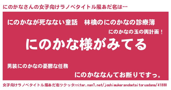 | 男性向けラノベタイトル風あだ名 | 『にのかなの嫁は女の子じゃないと思った?』 |