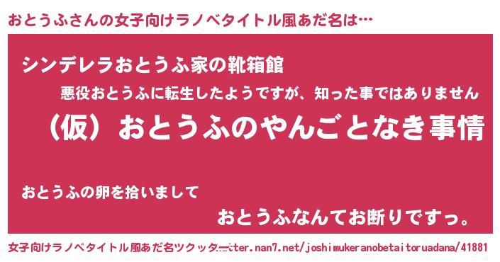 | 男性向けラノベタイトル風あだ名 | 『おとうふの憂鬱』 |