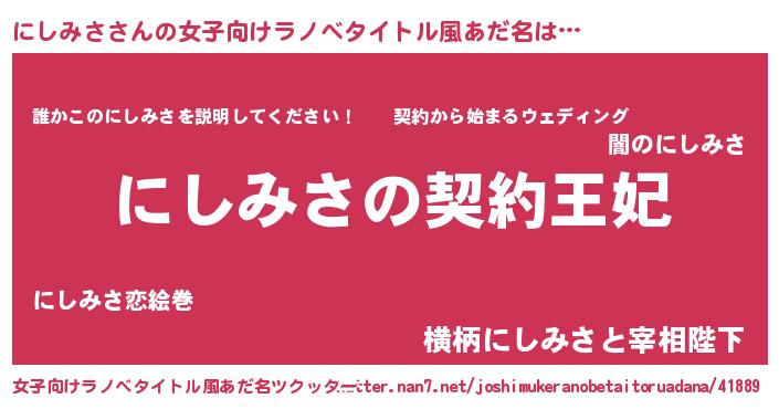 | 意味不明あだ名 | 『永久保存にしみさ』『ペロリンにしみさ』 |