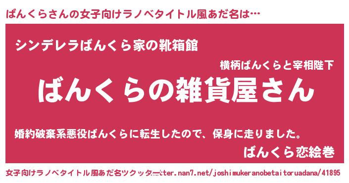 | 男性向けラノベタイトル風あだ名 | 『やはりばんくらの青春ラブコメはまちがっている 』 |