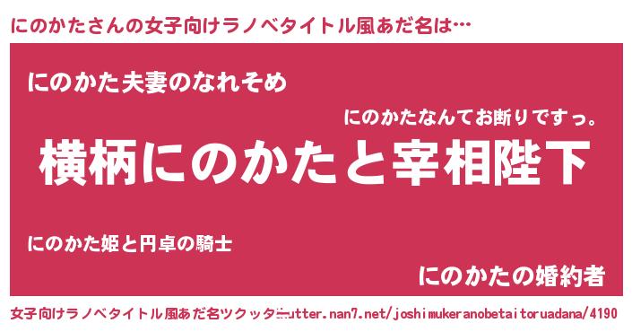 | 男性向けラノベタイトル風あだ名 | 『にのかたに滅ぼされるだけの簡単なお仕事です』 |