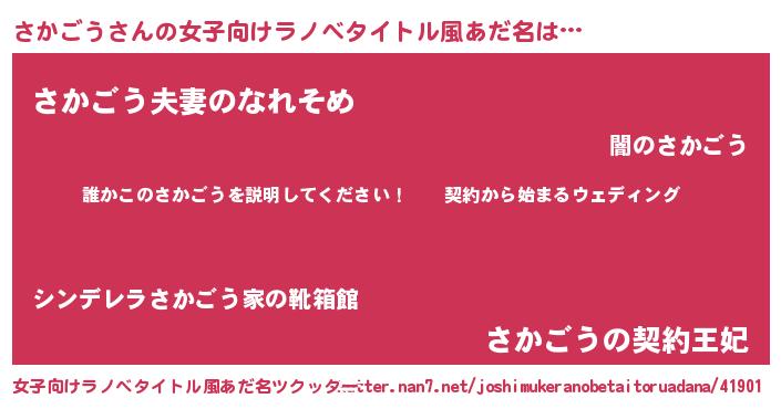 | 胡散臭い通販商品みたいなあだ名 | 『億万長者になれるブレスレット…その名も「さかごう」』 |
