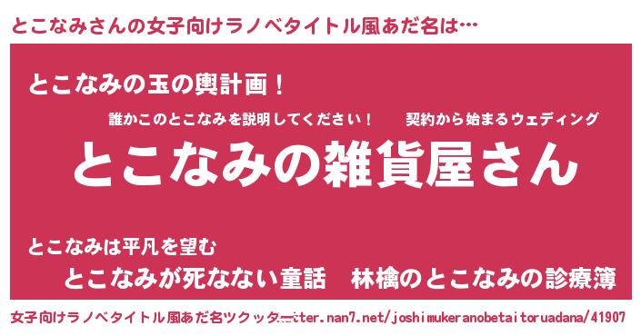 | 意味不明あだ名 | 『とこなみフォーエバー』 |