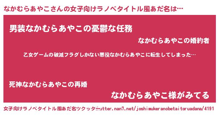 | 意味不明あだ名 | 『住所不定無職なかむらあやこ(71歳)』 |