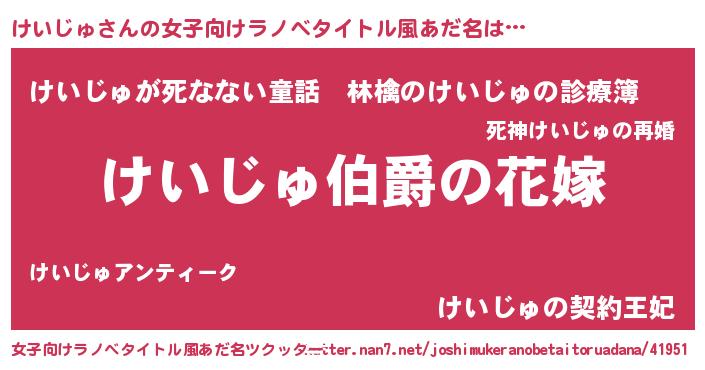 | 意味不明あだ名 | 『けいじゅフォーエバー』『自称けいじゅ』 |