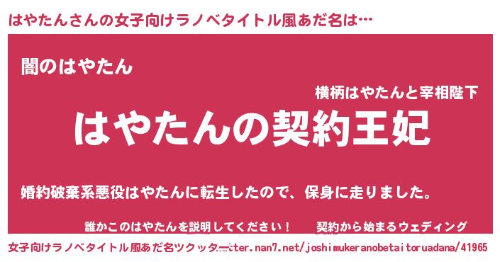 | 男性向けラノベタイトル風あだ名 | 『はやたんという概念が存在しない退屈な世界 』 |