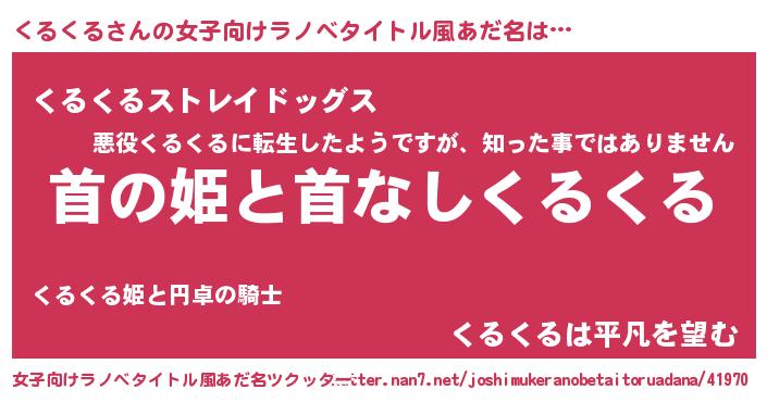 | 男性向けラノベタイトル風あだ名 | 『はたらくくるくるさま!』 |