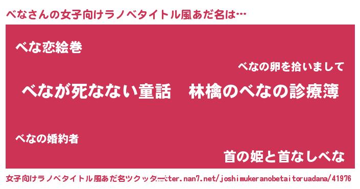 | 意味不明あだ名 | 『住所不定無職べな(79歳)』『永久保存べな』 |