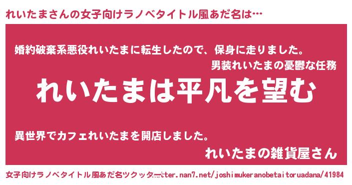 | 胡散臭い通販商品みたいなあだ名 | 『信頼と実績のサプリメント…その名も「れいたま」』 |