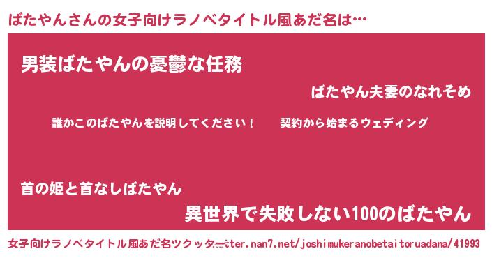 | 意味不明あだ名 | 『ペロリンばたやん』『永久保存ばたやん』 |