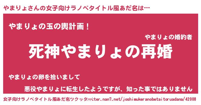 | 男性向けラノベタイトル風あだ名 | 『ノーゲーム・ノーヤマリョ』 |