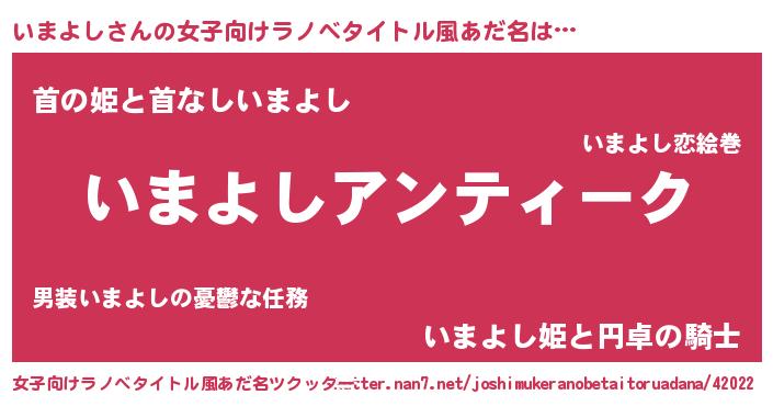 | 男性向けラノベタイトル風あだ名 | 『魔法科高校のいまよし』 |