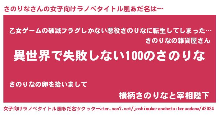 | 男性向けラノベタイトル風あだ名 | 『さのりなという概念が存在しない退屈な世界 』 |
