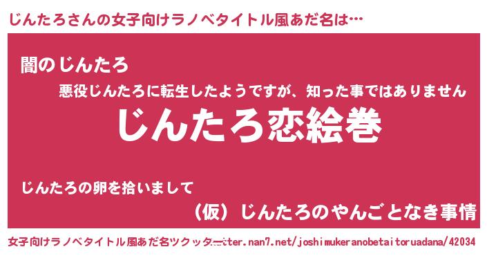 | 男性向けラノベタイトル風あだ名 | 『ノーゲーム・ノージンタロ』 |