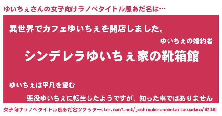 | 意味不明あだ名 | 『永久保存ゆいちぇ』『自称ゆいちぇ』 |
