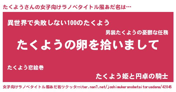 | 胡散臭い通販商品みたいなあだ名 | 『伝統あるサプリメント…その名も「たくよう」』 |