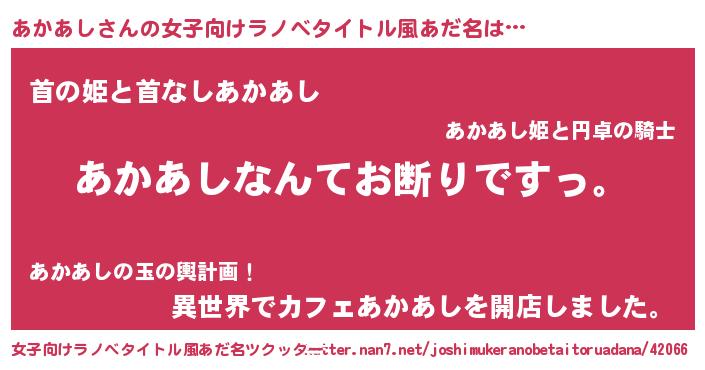 | 意味不明あだ名 | 『自称あかあし』『永久保存あかあし』 |