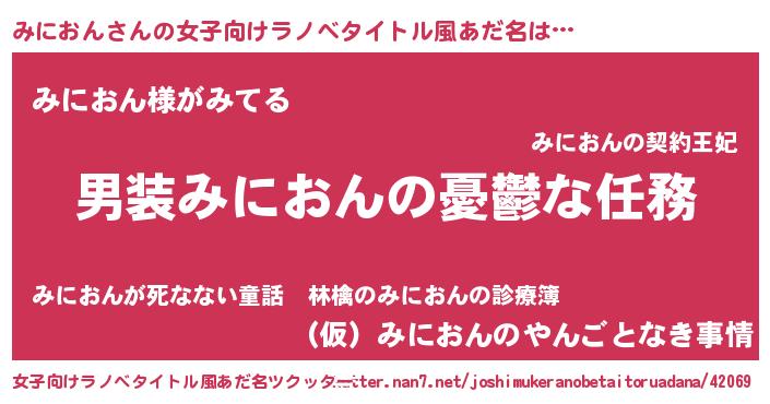 | ヘコむあだ名 | 『みにっぺ』『みにっふぃ~』 |