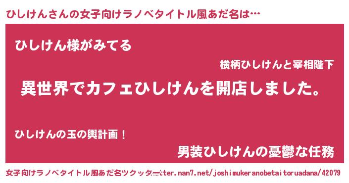 | 男性向けラノベタイトル風あだ名 | 『誰もが恐れるあのひしけんが、ぼくの専属メイドになるようです。』 |