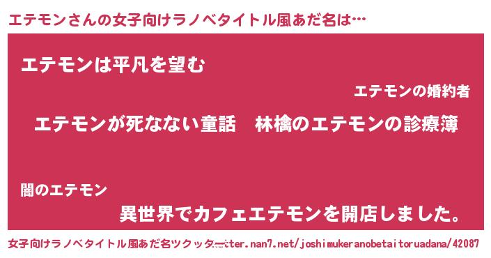 | 意味不明あだ名 | 『住所不定無職エテモン(4歳)』 |