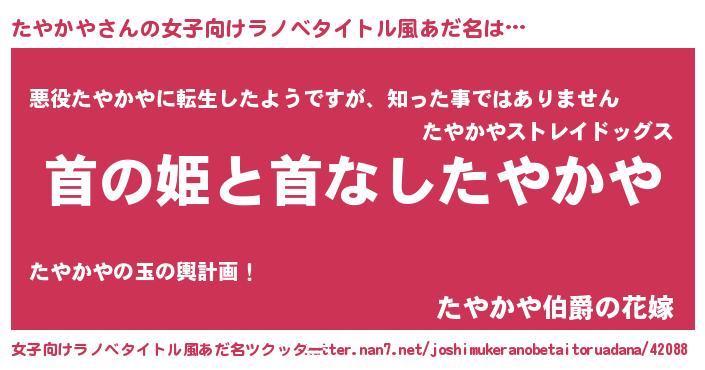 | ヒーロー風カッコイイあだ名 | 『仮面タヤダー』『ウルトラたやかやマン』 |