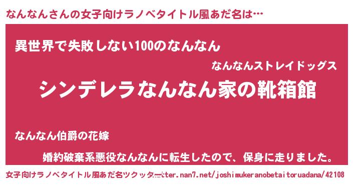 | 意味不明あだ名 | 『永久保存なんなん』『自称なんなん』 |