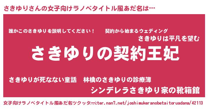 | 男性向けラノベタイトル風あだ名 | 『さきゆりという概念が存在しない退屈な世界 』 |
