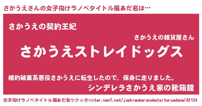| 男性向けラノベタイトル風あだ名 | 『Re:さかうえから始める異世界生活』 |