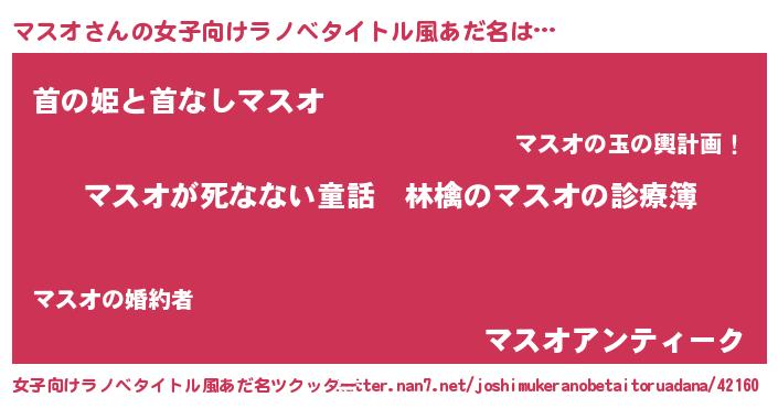 | 男性向けラノベタイトル風あだ名 | 『魔弾の王とマスオ』 |