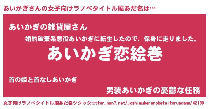 | 男性向けラノベタイトル風あだ名 | 『ノーゲーム・ノーアイカギ』 |