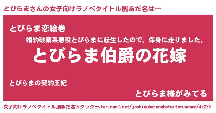 | 男性向けラノベタイトル風あだ名 | 『やはりとびらまの青春ラブコメはまちがっている 』 |