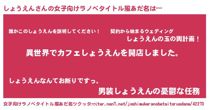 | 胡散臭い通販商品みたいなあだ名 | 『前代未聞の健康食品…その名も「しょうえん」』 |