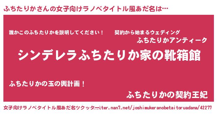 | 意味不明あだ名 | 『ペロリンふちたりか』『自称ふちたりか』 |