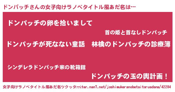 | 意味不明あだ名 | 『住所不定無職ドンパッチ(95歳)』 |