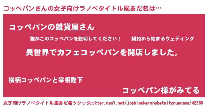 | ヒーロー風カッコイイあだ名 | 『ネオコッペパン』『炎刃騎士コッ』 |