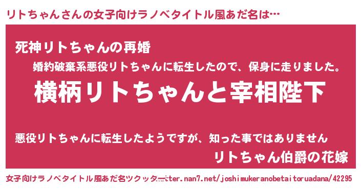 | ヒーロー風カッコイイあだ名 | 『慈愛の使者リトちゃん』『仮面リトダー』 |