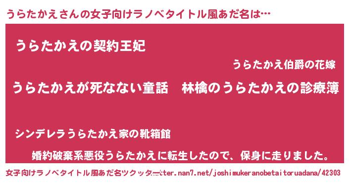 | 意味不明あだ名 | 『住所不定無職うらたかえ(13歳)』 |
