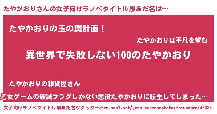 | 意味不明あだ名 | 『永久保存たやかおり』 |