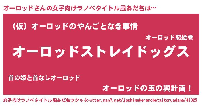| 男性向けラノベタイトル風あだ名 | 『Re:オーロッドから始める異世界生活』 |