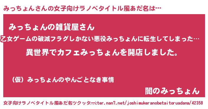 | 意味不明あだ名 | 『永久保存みっちょん』『自称みっちょん』 |