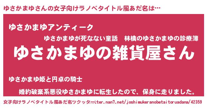 | ファンタジー風あだ名 | 『エターナルユサカマユー』『ゼユサトゥ』 |