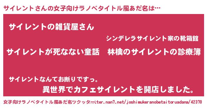 | 男性向けラノベタイトル風あだ名 | 『魔弾の王とサイレント』 |