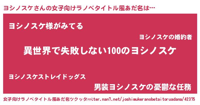 | 男性向けラノベタイトル風あだ名 | 『ヨシノスケという概念が存在しない退屈な世界 』 |